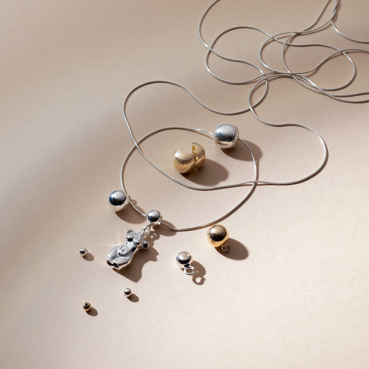 Stříbrné kuličky plní mnoho funkcí – od dekorativních po praktické. Mohou sloužit jako estetické zakončení na nosiči, jako oddělovač mezi kameny, perlami, korálky, nebo jako funkční stoper zabraňující posunu ozdobných detailů. Malý komponent, který významně ovlivňuje výsledný vzhled kompozice.