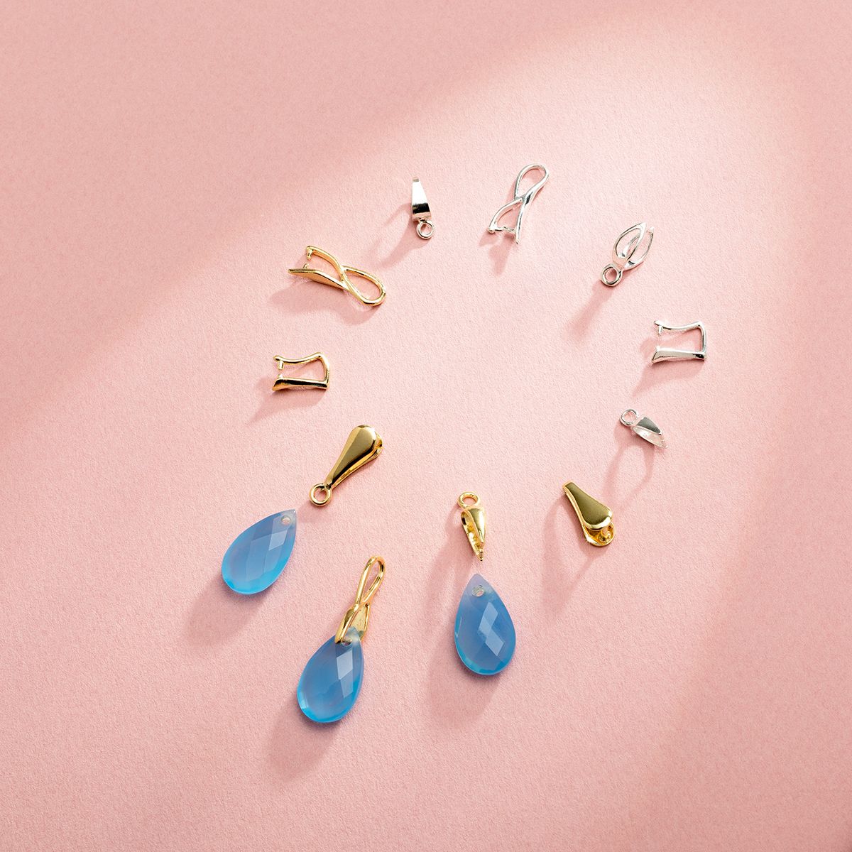 Jemně profilovaný tvar decentně podtrhuje charakter zavěšené ozdoby a dodává jí elegantní, profesionální vzhled. Minimalistická forma se hodí k moderním i klasickým designům. Závěska může sloužit také jako montážní prvek v náušnicích nebo přívěscích s kameny různých tvarů.