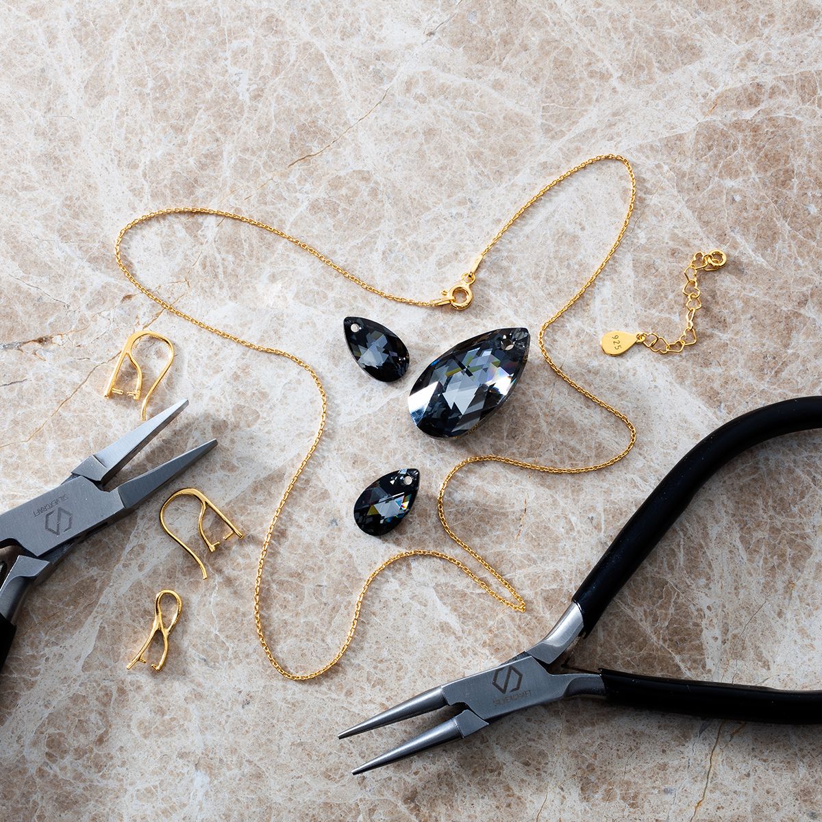 Před použitím komponentů při výrobě šperků se doporučuje zkontrolovat jejich stav, například zda nemají drobná poškození, deformace nebo uvolněné části..