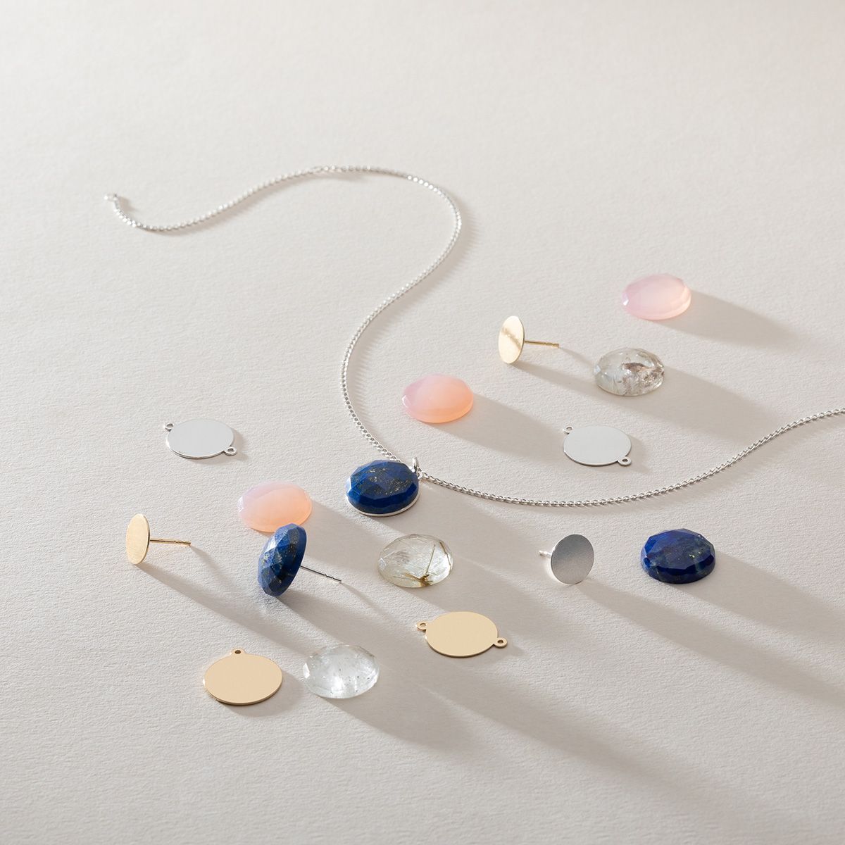 Základy pro náušnice lze navíc pozlatit, rhodiovat nebo platinovat, aby barevně ladily s lepenými prvky a byly chráněny před oxidací nebo změnou barvy.