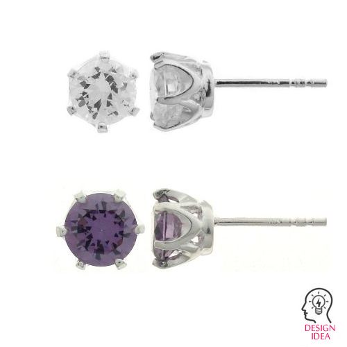 Náušnice na puzetu s košíkem - základna pro nastřelování kulatý zirkon 6mm, stříbrný AG 925