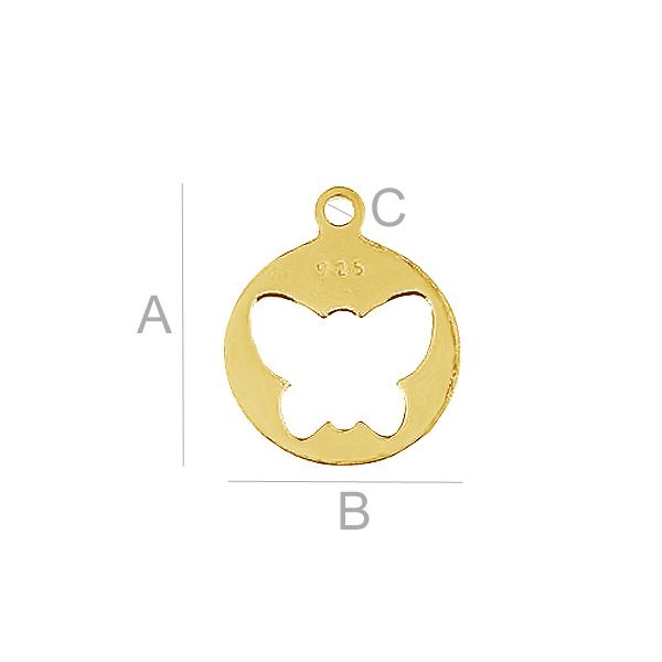 Přívěsek - kulatý talíř - motýl, stříbrný AG 925