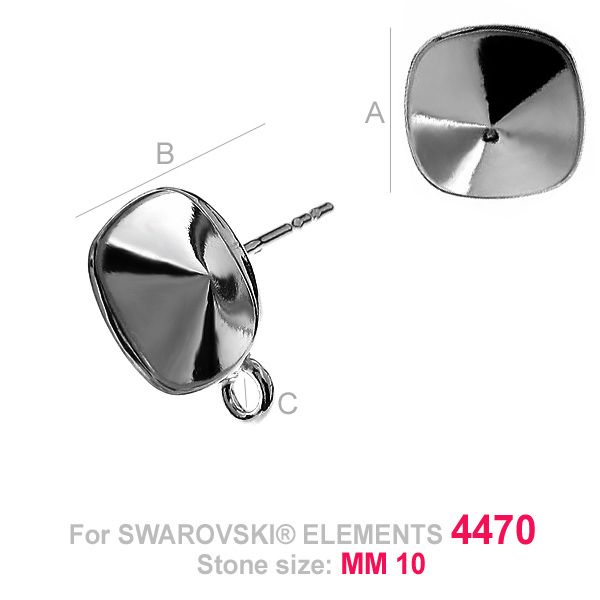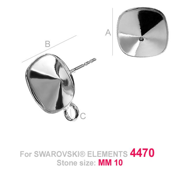 Náušnice na puzetu - základ pro Cushion Square, stříbrná AG 925