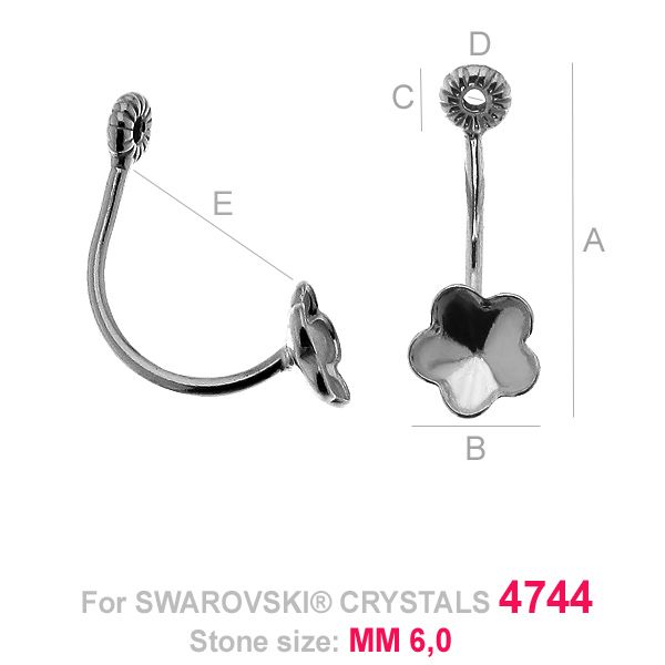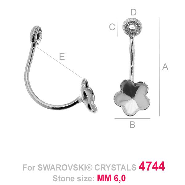 A=18,50 mm; B=6,00 mm; C=3,70 mm; D=1,20 mm; E=10,00 mm, mincovní stříbro (AG-925)