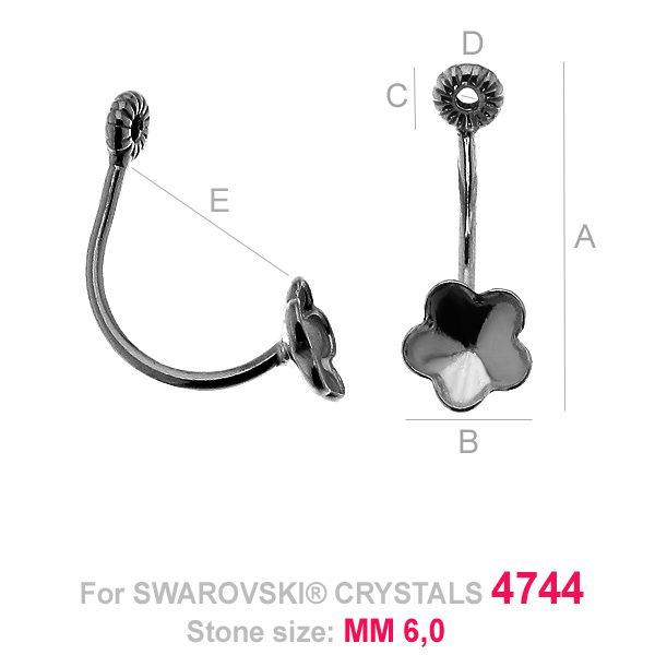 Prvek, pokrytý vrstvou rhodia. Elementy rhodiované netmavne a nematově. Jsou odolné vůči jakémukoliv probarvení. Vizuálně jsou tmavší než stříbraná verze a připomínají bílé zlato. Tloušt'ka vrdtvy rhodia je 0,2 μm.