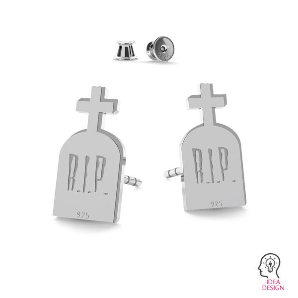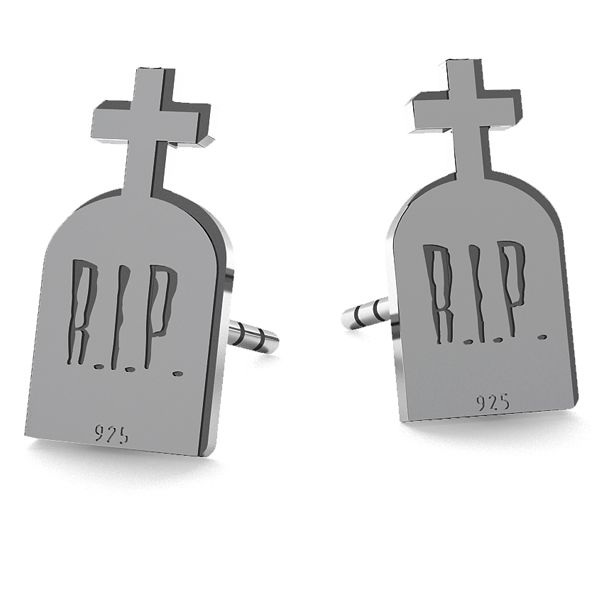Náušnice na puzetu - náhrobní kámen RIP, stříbro AG 925