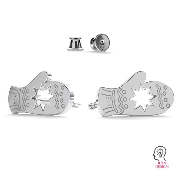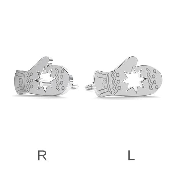 Náušnice na puzetu - Vánoční rukavička, stříbrná AG 925