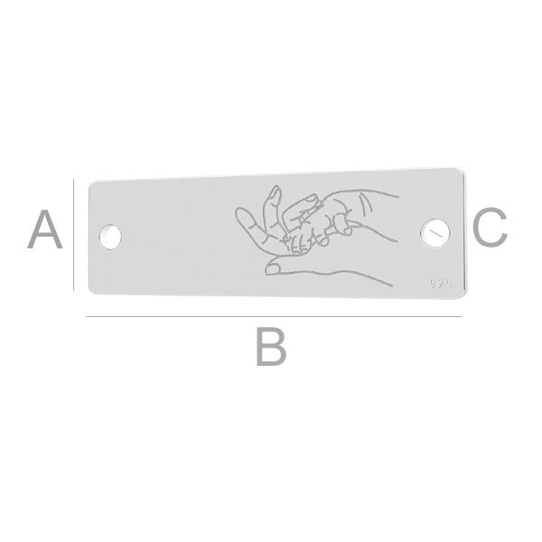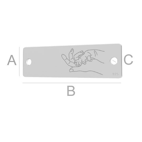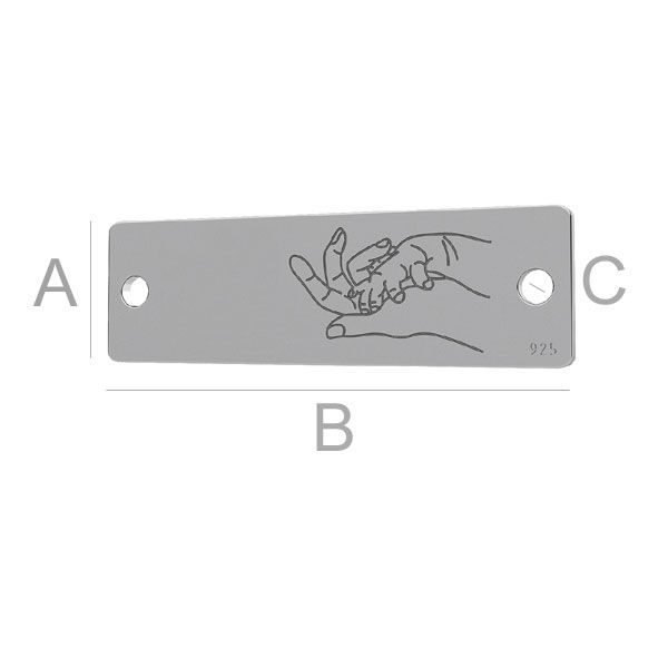 Přívěsek konektoru - obdélníková deska - ruce matky a dítěte, stříbrná AG 925