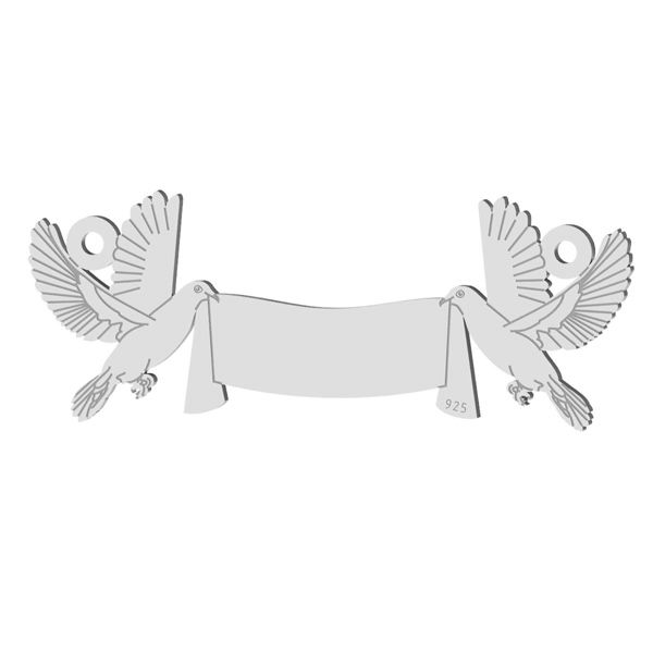 Přívěsek konektoru - stuha s holubicemi, stříbrná AG 925