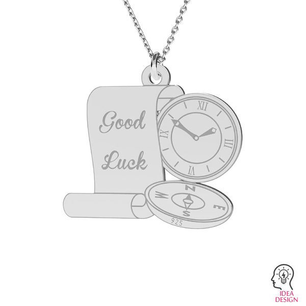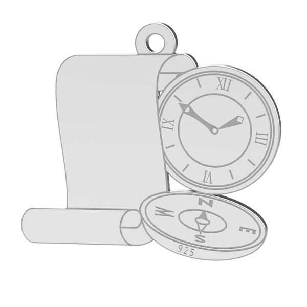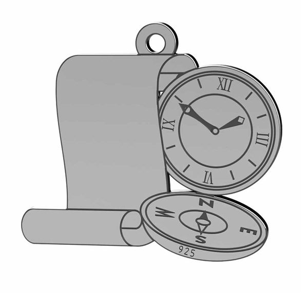 Přívěsek - kompas s hodinami, stříbrný AG 925