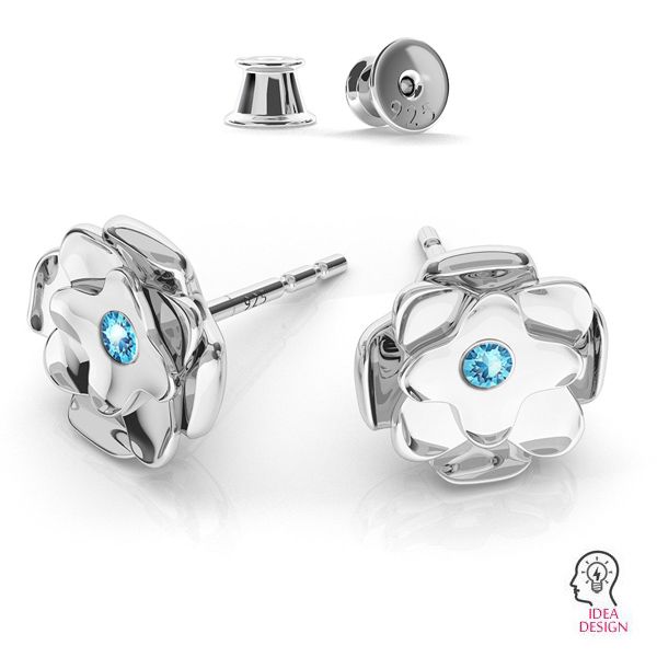 Puzetová náušnice – růže – základ pro krystal SW 1088 PP 16, stříbro AG 925