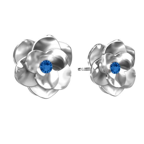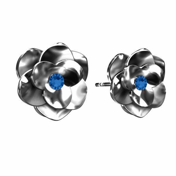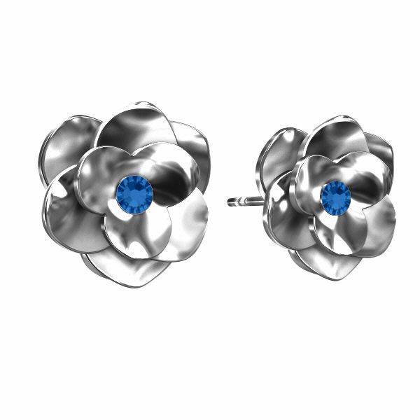 Puzetová náušnice – růže s modrým krystalem CAPRI BLUE, stříbro AG 925