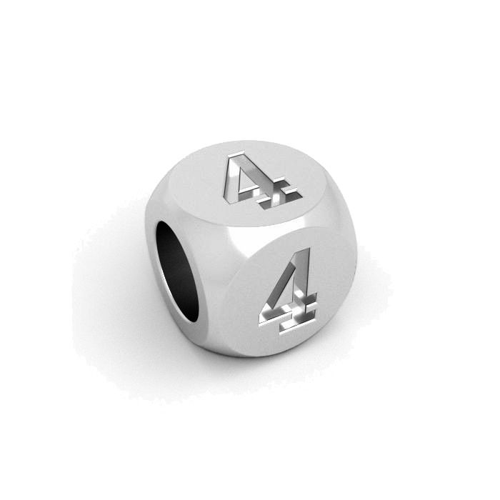 Korálkový přívěsek - kostka číslo 4, stříbrná AG 925