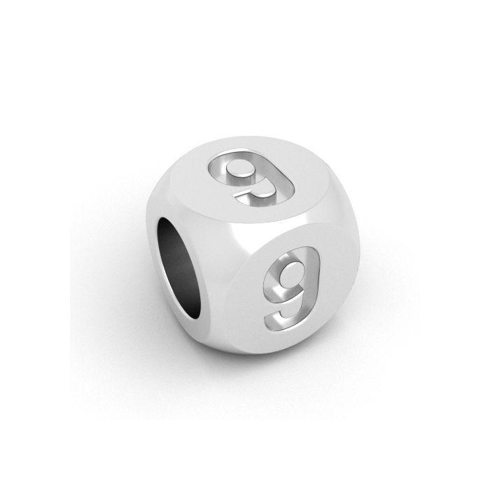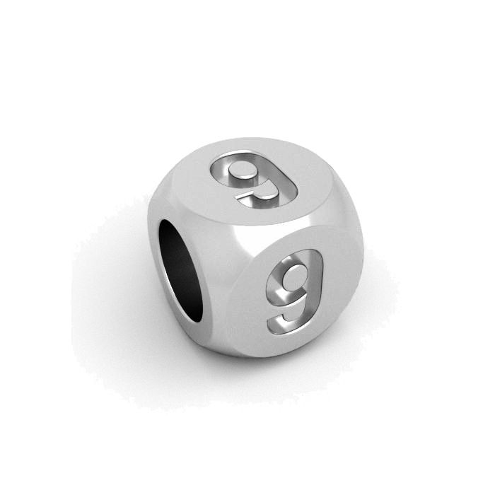 Korálkový přívěsek - kostka číslo 9, stříbrná AG 925