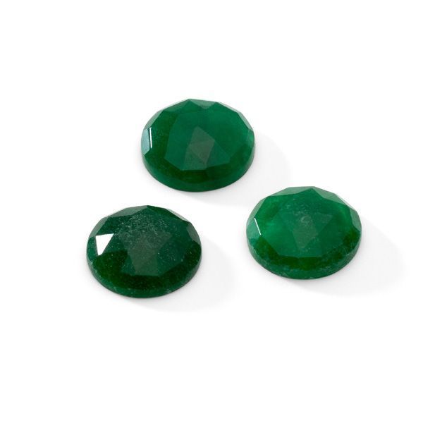 Zelený jadeit v rozetovém brusu o velikosti 15,2 mm. Fasetovaný přírodní kámen s plochou spodní stranou. Skvělý pro zenové nebo minimalistické šperky.