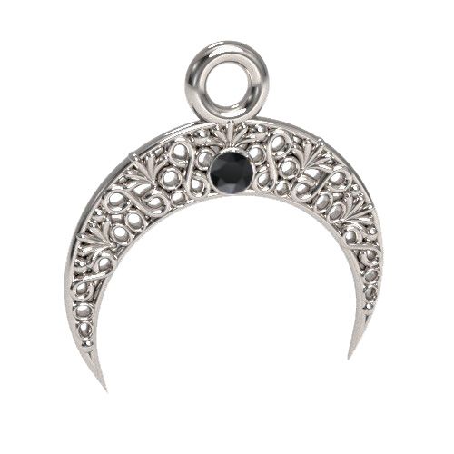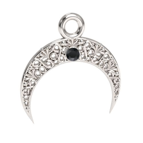 Filigránový přívěsek - měsíc s kamenem Jet, stříbrný AG 925