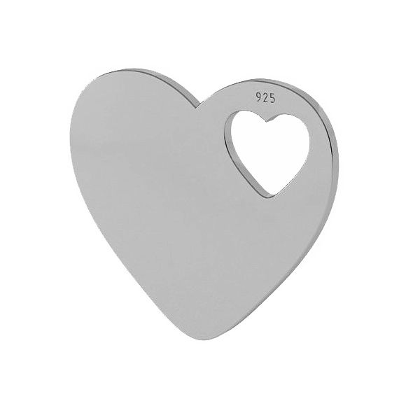 Přívěsek - srdce s vyříznutým srdcem - gravírovací destička, stříbrná AG 925