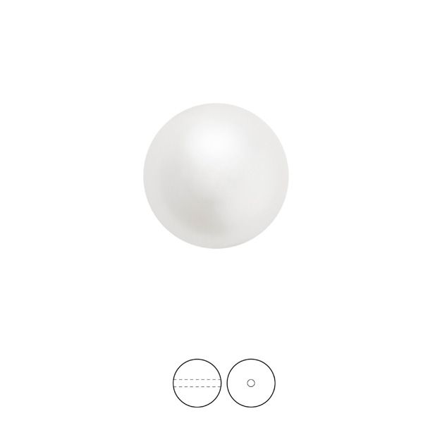 Bílá perla s jedním neprůchozím otvorem, 4 mm. Hladký, kulatý tvar vhodný k vlepení do náušnic, prstenů či přívěsků.