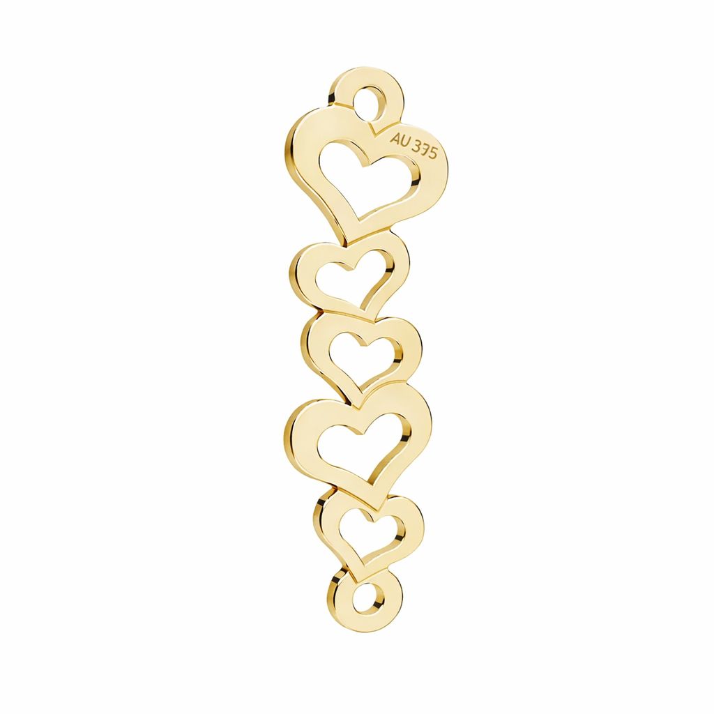 Ažurový spojovací díl s motivem srdíček ze zlata AU 375 je lehký a přesný šperkařský polotovar. Opakující se motiv se hodí pro moderní i klasické kolekce.