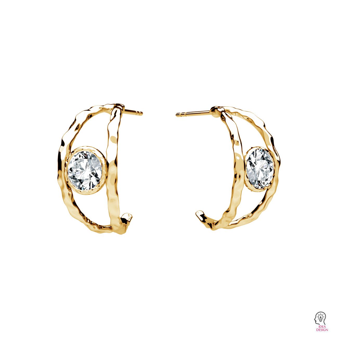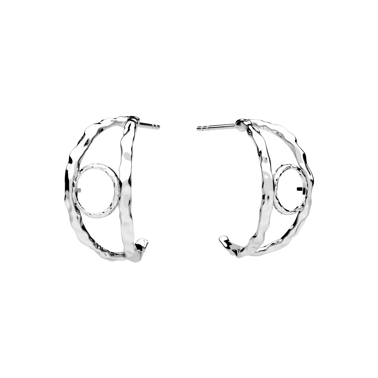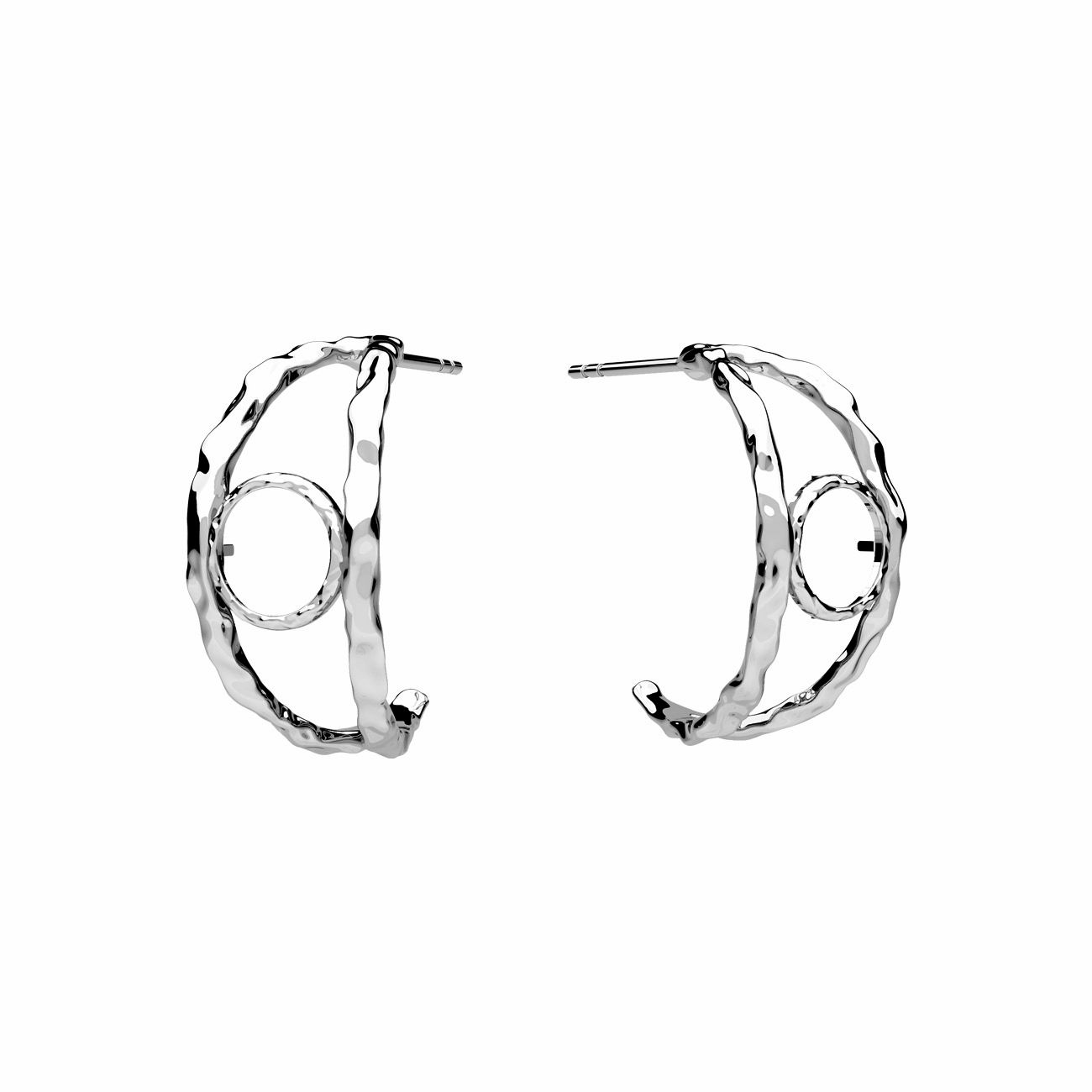 Puzetová náušnice - půlkruhová, lůžko pro kulaté přírodní kameny, kužel 6 mm, stříbrný AG 925