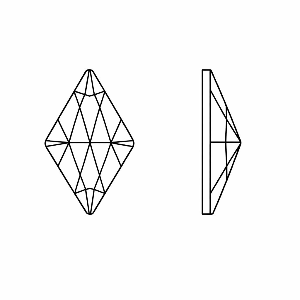 Swarovski kámen ve tvaru kosočtverce o rozměrech 13,0 × 8,0 mm v barvě Crystal Golden Shadow. Model 2709 je fancy stone s fólií na spodní straně (foiled), bez otvoru. Geometrický, symetrický tvar a teplý zlatý odstín jsou vhodné pro šperky, doplňky a dekorace.